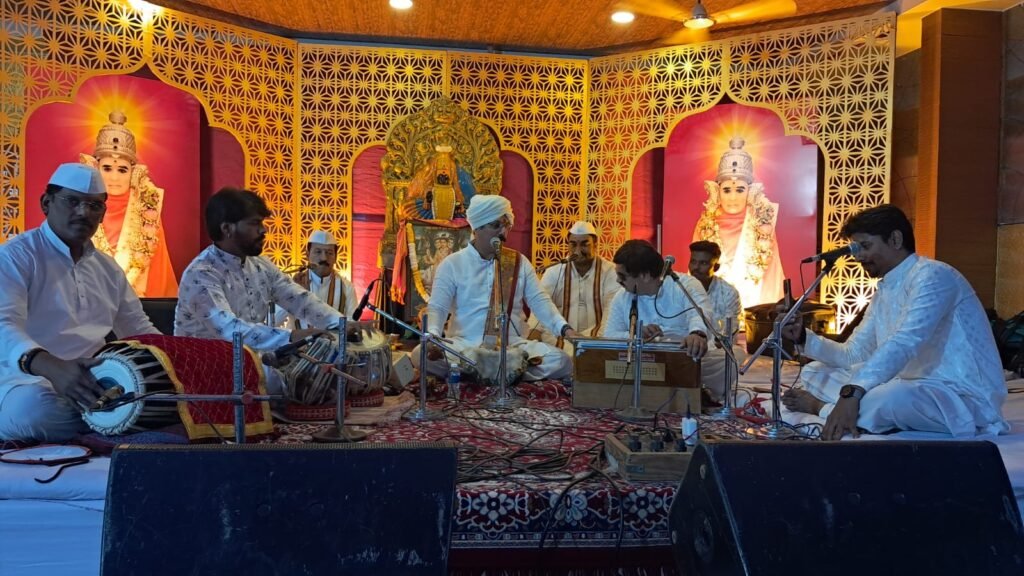 तुकोबांच्या ‘हेचि येळ देवा…’ या अभंगाने भक्ती शक्तीचा अवघा रंग एकचि झाला, अशी अनुभूती भाविकांना प्राप्त झाली. गोंधळ आणि भारूड या पारंपरिक रचनांनंतर ‘आम्ही गड्या डोंगरचं राहणारं…’ आणि ‘देह विठ्ठल विठ्ठल झाला…’ या गीतांना भरभरून दाद मिळाली. ‘पावनखिंड’ या चित्रपटातील ‘युगत मांडली…’ तसेच छत्रपती शिवाजीमहाराज यांचे माहात्म्य वर्णन करणारे ‘रणी धाव तू मार्तंड…’ या गीतांना श्रोत्यांनी सामुदायिक गायनसाथ केली. उत्तरोत्तर रंगलेल्या या मैफलीचा समारोप ‘स्वामींचे हे देणे…’ या भैरवीने करण्यात आला. अभय नलगे (हार्मोनियम), पांडुरंग पवार (तबला), राजेंद्र बघे (मृदंग), प्रसाद भांडवलकर, हेमंत क्षीरसागर, प्रतीक डोळस आणि विजय सोनवणे (तालवाद्य) यांनी साथसंगत केली.