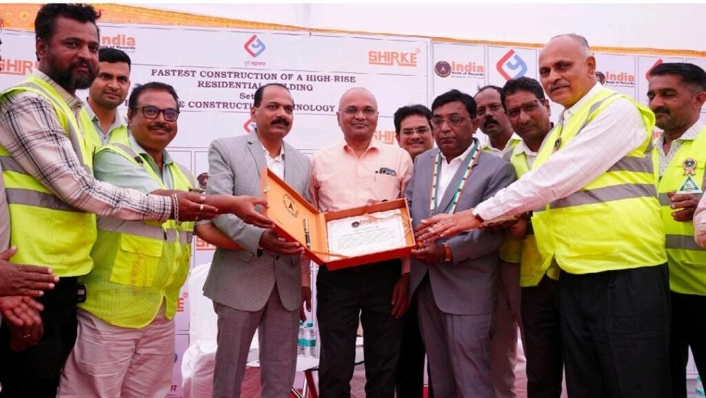 पुणे,(महाराष्ट्र ब्रेकिंग न्यूज) – पुणे महानगर परिसरात बांधकाम क्षेत्रात एक अभूतपूर्व कामगिरी समोर आली असून, केवळ १०० दिवसांत १४ मजली उंच निवासी इमारत उभी करत बी. जी. शिर्के कन्स्ट्रक्शन टेक्नोलॉजी प्रा. लि. यांनी इतिहास घडवला आहे. या विक्रमी कामगिरीची दखल घेत इंडिया बुक ऑफ रेकॉर्ड्स कडून त्यांना सन्मानित करण्यात आले आहे.