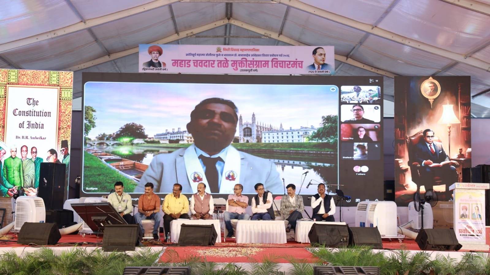 केशव वाघमारे यांनी आपल्या भाषणात डॉ. बाबासाहेब आंबेडकर यांच्या विचारांचा संदर्भ देत १९२७ मध्ये झालेल्या महाड सत्याग्रहातील त्यांच्या ऐतिहासिक भूमिकेचा उल्लेख केला. या सत्याग्रहातील भाषणात बाबासाहेबांनी समतेच्या लढ्याची तुलना फ्रान्समधील वर्साय येथील समतेच्या चळवळीशी केली होती, असे त्यांनी सांगितले. तसेच लोकशाही मूल्यांना प्राधान्य देणाऱ्या देशांशी संबंध प्रस्थापित करण्याची बाबासाहेबांची ठाम भूमिका होती, असे नमूद करत त्यांनी आंबेडकरी विचारांची जागतिक दृष्टी स्पष्ट केली.