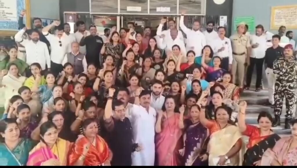 पिंपरी, (महाराष्ट्र ब्रेकिंग न्यूज) – नारी शक्ती वंदन विधेयकाच्या मुद्द्यावरून देशभरात राजकीय वातावरण तापलेलं असताना पिंपरी-चिंचवड महानगरपालिकेतही त्याचे पडसाद उमटले. इंडिया आघाडीने या विधेयकाला विरोध केल्याच्या पार्श्वभूमीवर भाजपकडून देशभरात निषेध आंदोलनं सुरू आहेत. त्याचाच भाग म्हणून पिंपरी-चिंचवड महानगरपालिकेत आज झालेल्या सर्वसाधारण सभेतही भाजपने आक्रमक भूमिका घेत निषेध नोंदवला. आजच्या सभेत अनेक महिला नगरसेविकांनी काळ्या रंगाच्या साड्या परिधान करून प्रतीकात्मक निषेध व्यक्त केला.