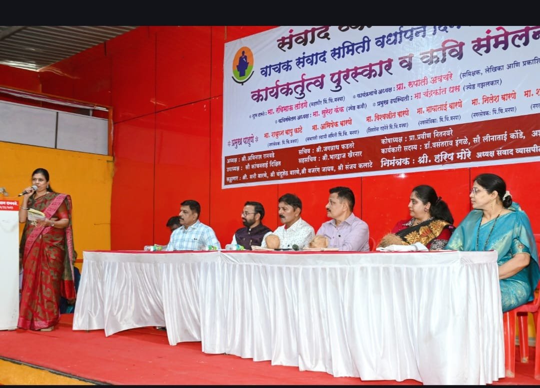 ज्येष्ठ कवी सुरेश कंक, चंद्रकांत धस, भाजप शहराध्यक्ष शत्रूघ्न काटे, नगरसेविका शालिनी गुजर, वाचक संवाद समितीचे अध्यक्ष अविनाश रानवडे, कांचन दीक्षित, जगन्नाथ फडतरे हे व्यासपीठावर उपस्थित होते. प्रा. रूपाली अवचरे पुढे म्हणाल्या की, ‘आयुष्यातील यश अपयश यावर मात करण्याचे बळ पुस्तके देतात. त्यामुळे माणूस संस्कारक्षम होतो!’ याप्रसंगी सोळा कवींनी आपल्या दर्जेदार कविता सादर करून प्रेक्षकांची दाद मिळवली. युवा अभिनेत्री श्रुती उबाळे, नाना शिवले, तृप्ती निंबळे, गोविंद चौधरी, राजेंद्र शिंदे यांना कार्यकर्तृत्व पुरस्काराने सन्मानित करण्यात आले. कार्यक्रमाचे प्रास्ताविक संवाद व्यासपीठाचे अध्यक्ष हरीश मोरे यांनी केले. सूत्रसंचालन सुहास घुमरे यांनी तर आभार लीना कोंडे यांनी मानले.