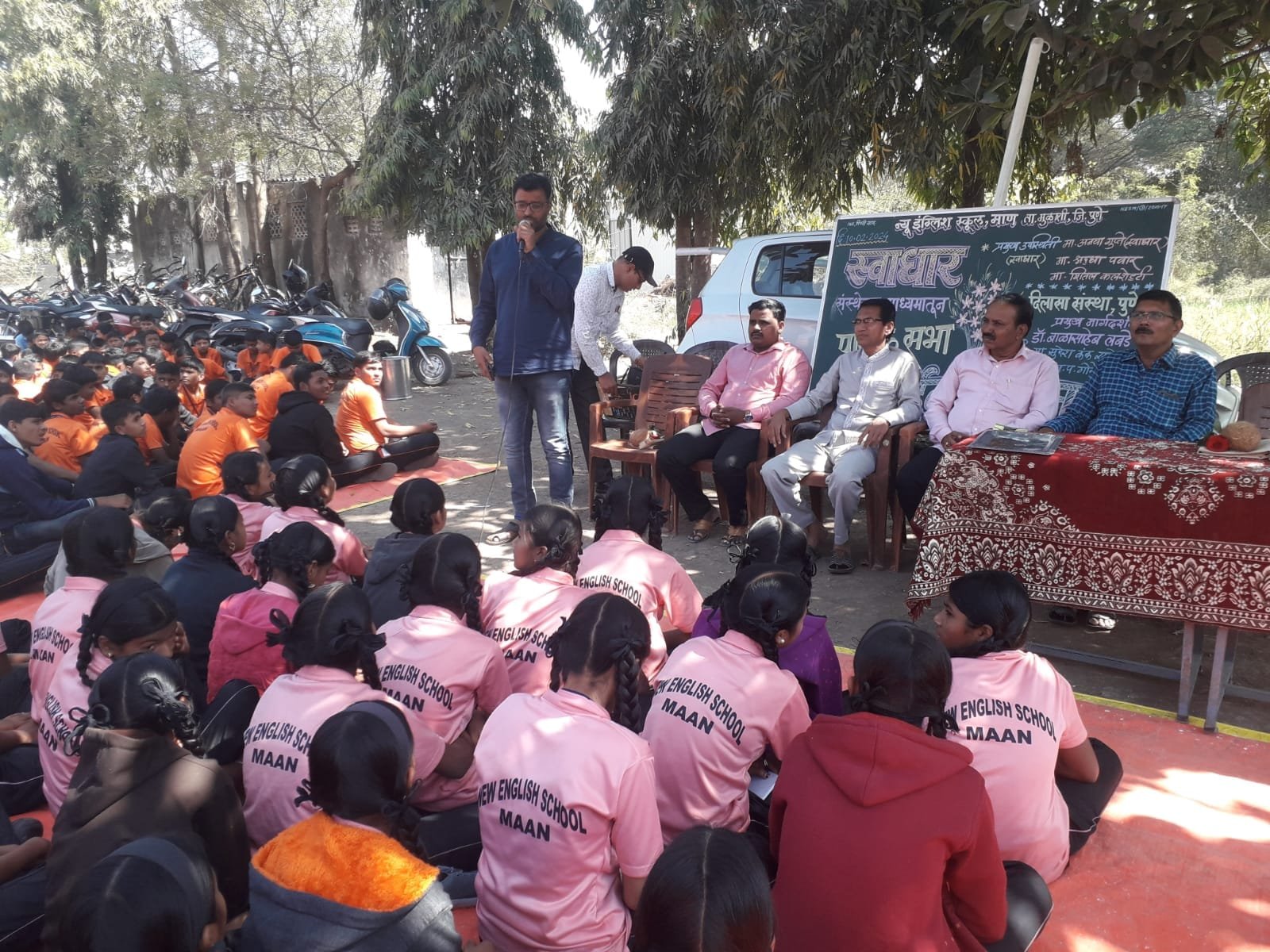 सभेच्या अध्यक्षस्थानी विद्यालयाचे मुख्याध्यापक अंबादास रोडे होते. प्रमुख अतिथी स्वाधार परिवाराच्या अनधा गुप्ते ,प्रा. डॉ. बाळासाहेब लबडे, दिलासा संस्थेचे अध्यक्ष सुरेश कंक, ह. भ. प. अशोकमहाराज गोरे, सामाजिक कार्यकर्ते तेजस कुंभार व्यासपीठावर होते.