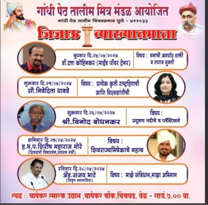 पिंपरी, (महाराष्ट्र ब्रेकिंग न्यूज) – गांधी पेठ तालीम मित्र मंडळ ही पिंपरी चिंचवड शहरातील एक सामाजिक व प्रबोधनात्मक कार्यक्रम आयोजित करणारी अग्रगण्य संस्था आहे. गतवर्षीप्रमाणे या संस्थेच्या वतीने जिजाऊ व्याख्यानमालेचे (वर्ष ३४ वे) आयोजन करण्यात आले आहे. त्याचे