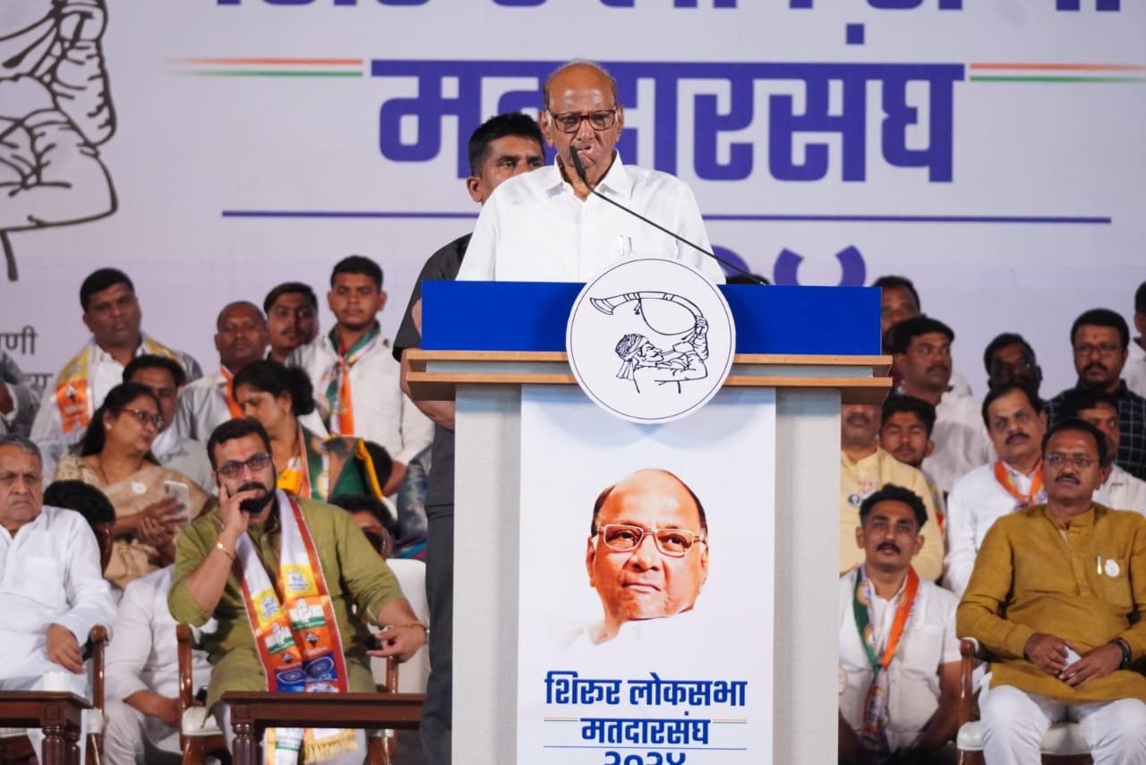 उरुळी कांचन येथे महाविकास आघाडीतील राष्ट्रवादी काँग्रेस शरदचंद्र पवार पक्षाचे उमेदवार खासदार डॉ. अमोल कोल्हे यांच्या प्रचारार्थ आयोजित केलेल्या सभेत पवार बोलत होते. यावेळी प्रदेशाध्यक्ष जयंत पाटील, डॉ. अमोल कोल्हे, आमदार अशोक पवार, जिल्ह्याध्यक्ष जगन्नाथ शेवाळ, शिवसेनेचे जिल्हाप्रमुख अशोक खांडेभराड, काँग्रेसचे देवदत्त भन्साळी आदी उपस्थित होते.