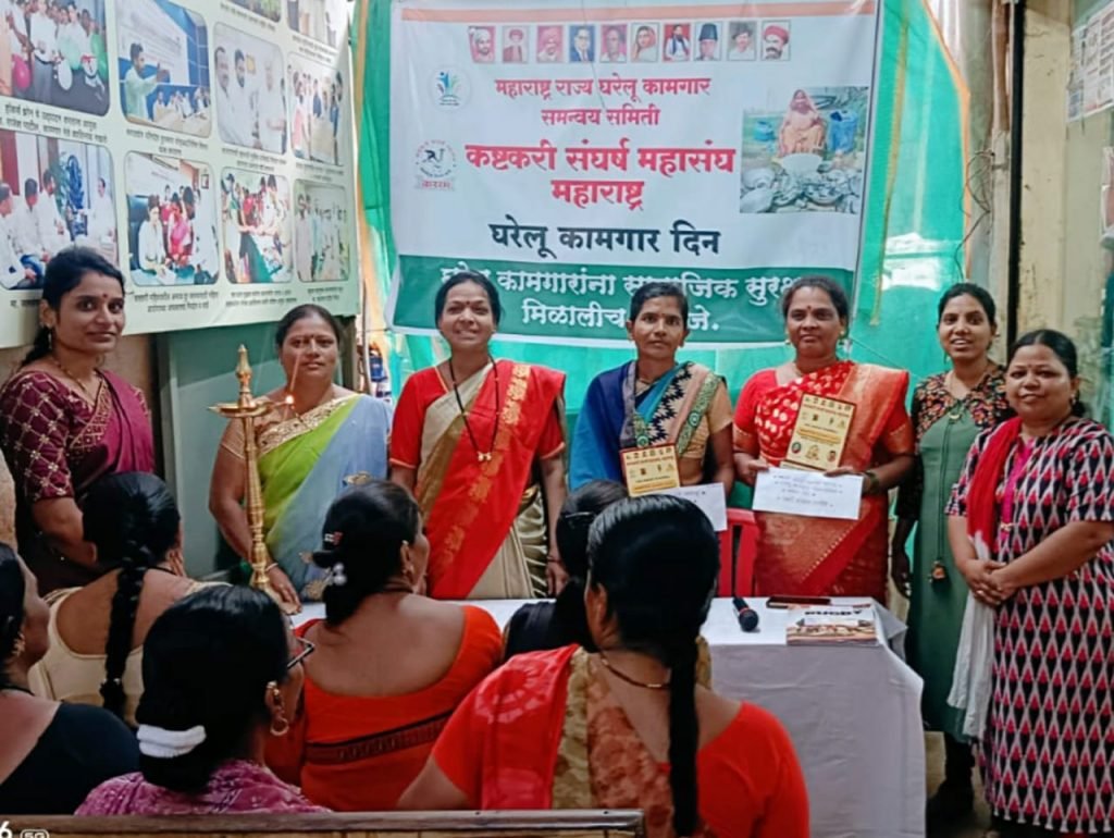 पिंपरी, (महाराष्ट्र ब्रेकिंग न्यूज) – महाराष्ट्र राज्य घरेलू कामगार समन्वय समिती, कष्टकरी संघर्ष महिला महासंघातर्फे आज चिंचवड येथील कार्यालयासमोर घरेलू काम करून उदरनिर्वाह करणाऱ्या व विशेष नैपुण्य मिळवणाऱ्या लक्ष्मी रणदिवे, वैशाली गोंदिल या घरेलू कामगारानां श्रमप्रतिष्ठा गौरव पुरस्कार २०२४ देऊन सन्मानीत करण्यात आले.