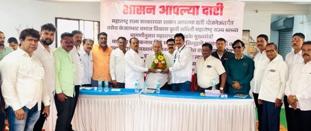 पिंपरी, (महाराष्ट्र ब्रेकिंग न्यूज) – महाराष्ट्रभर पसरलेला कंजार भाट समाज हा भटके विमुक्त समाज म्हणून ओळखला जातो. या समाजाला शासकीय योजना व शिक्षणाचा लाभ घेण्यासाठी १९६१ साल पूर्वीचा महाराष्ट्र राज्यातील रहिवास पुरावा सादर करावा लागतो. मुळातच या समाजातील नागरिकांचे शिक्षण अत्यल्प असल्यामुळे असे महसुली पुरावे जमा करणे शक्य होत नाही. त्यामुळे या समाजातील विद्यार्थी व नागरिकांना शिक्षण व शासकीय योजनांचा लाभ मिळत नाही. याबाबत शासन स्तरावर कंजार भाट समाज विकास कृती समिती, महाराष्ट्र राज्य या संस्थेच्या वतीने मुख्यमंत्री एकनाथ शिंदे, उपमुख्यमंत्री अजितदादा पवार, देवेंद्र फडणवीस यांच्याकडे खासदार श्रीरंग बारणे यांच्या माध्यमातून पाठपुरावा करून शासन आपल्या दारी हा उपक्रम पिंपरीत बुधवारी घेण्यात आला. याचे उद्घाटन माजी महापौर कवीचंद भाट, समितीचे सल्लागार मुरचंद भाट यांच्या हस्ते करण्यात आले.