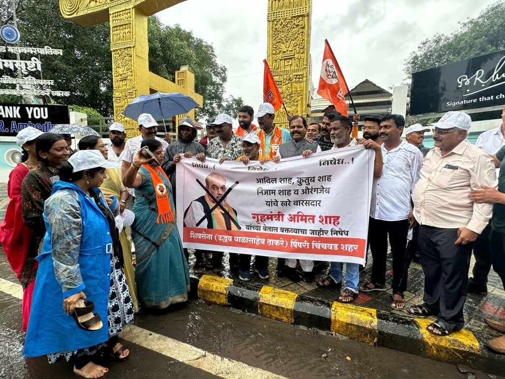 पिंपरी, (महाराष्ट्र ब्रेकिंग न्यूज) – भारतीय जनता पक्षाच्या पुणे या ठिकाणी पार पडलेल्या राज्य अधिवेशनात केंद्रीय गृहमंत्री अमित शहा यांनी शिवसेना पक्ष प्रमुख उद्धव ठाकरे यांच्या बद्दल केलेल्या बेताल वक्तव्याचा जाहीर निषेध करण्यासाठी शिवसेना पक्षाच्या वतीने पिंपरी येथील महामानव डॉ.बाबासाहेब आंबेडकर चौक या ठिकाणी शहा यांच्या विरोधात जोरदार घोषणाबाजी करून शहा यांच्या प्रतिमेस जोडो मारो आंदोलन करण्यात आले.