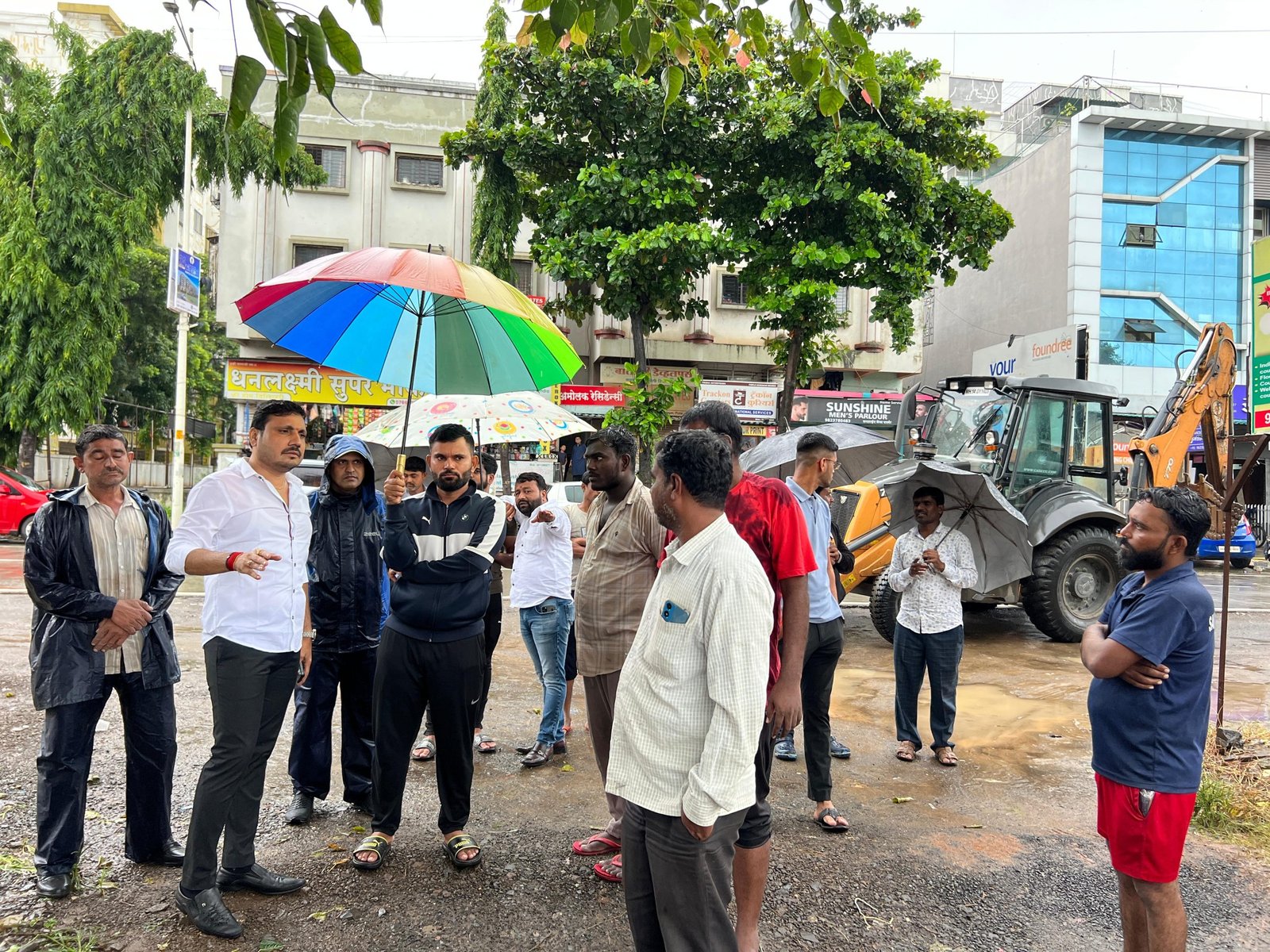 पिंपरी, (महाराष्ट्र ब्रेकिंग न्यूज) – काल संध्याकाळी सुरू झालेल्या पावसाने आज अतिवृष्टीचे रूप घेतले आहे. सतत पडणार्या पावसामुळे प्रभागतील काही ठिकाणी पाणी साचले आहे . या परिस्थितीची गंभीरपणे दखल घेत शत्रुघ्न काटे यांनी तातडीने पालिका अधिकार्यांसोबत पाणी साचलेल्या परिसरात पाहणी केली. पाहणी दरम्यान ज्या ठिकाणी पाणी साचले आहे अश्या ठिकाणी आवश्यक त्या उपाययोजना करण्याच्या सूचना दिले आहे .