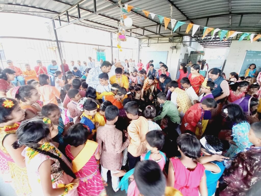 पिंपरी, (महाराष्ट्र ब्रेकिंग न्यूज ) – राधा-कृष्णाच्या वेशातील चिमुकले… विविधरंगी फुलांनी सजवलेली दहीहंडी… विविध गाण्यांचा गजर…. हंडी फुटल्यावर केलेला एकच जल्लोष… अशा उत्साही वातावरणात जुनी सांगवीतील अरविंद एज्युकेशन सोसायटीच्या लिटल फ्लॉवर प्री प्रायमरी स्कुल, लिटिल फ्लाॅवर इग्लिश मीडियम स्कुल, भारतीय विद्यानिकेतन विद्यालयात बालचमुंनी दहीहंडीचा आनंद लुटला. गोविंदा आला रे आला… यासारख्या गाण्यावर नृत्य करत ते दहीहंडी व कृष्णजन्माष्टमी उत्सवात सहभागी झाले होते. यामध्ये चिमुकल्यांसह शिक्षकही उत्साहाने सहभागी झाले होते.
