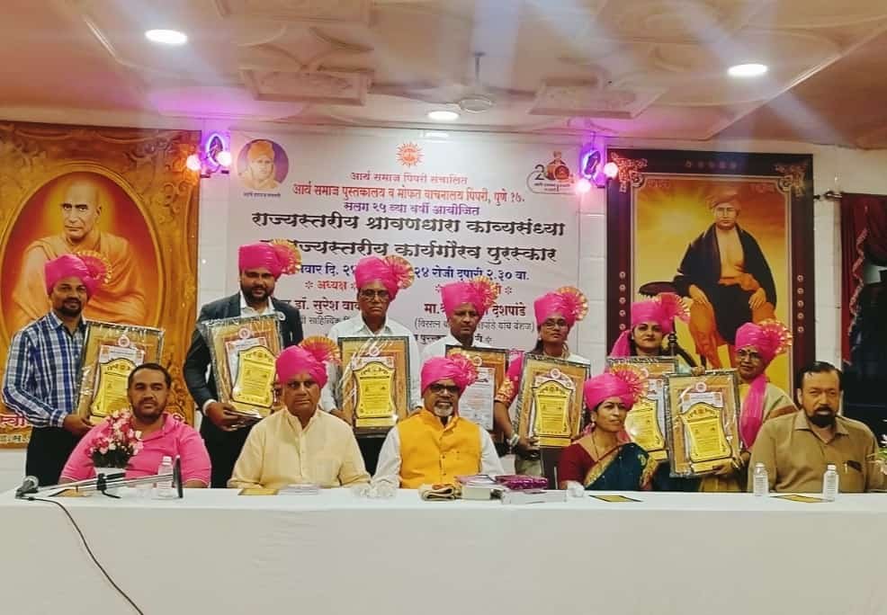 पिंपरी, (महाराष्ट्र ब्रेकिंग न्यूज ) पिंपरी येथील आर्य समाज पुस्तकालय व मोफत वाचनालयाच्या वतीने आयोजित केलेल्या राज्यस्तरीय श्रावणधारा काव्यसंध्या-२०२४, या सोहळ्यात विविध क्षेत्रात उल्लेखनीय कार्य करणाऱ्या कार्यकर्त्यांना शाल, श्रीफळ, ग्रंथ आणि सन्मानचिन्ह देऊन गौरविण्यात आले. पिंपरी चिंचवड शहरातील लेखक,कवी, पर्यावरण मित्र आणि वसुंधरा पर्यावरण प्रतिष्ठानचे संस्थापक/अध्यक्ष तानाजी एकोंडे-पाटील यांना त्यांच्या सामाजिक, शैक्षणिक, साहित्यिक, सांस्कृतिक आणि पर्यावरणीय क्षेत्रात केलेल्या कार्याबद्दल “राज्यस्तरीय कार्यगौरव पुरस्काराने” सन्मानित करण्यात आले.