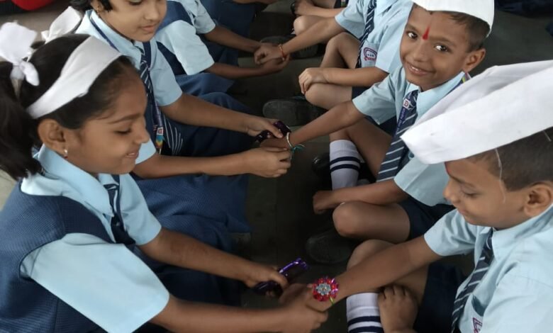 पिंपरी,(महाराष्ट्र ब्रेकिंग न्यूज) – ‘सण आहे रक्षाबंधनाचा, नेत्रांच्या निरांजनाने भावाला ओवाळण्याचा’ या उक्तीप्रमाणे जुनी सांगवीतील अरविंद एज्युकेशन सोसायटीच्या लिटल फ्लॉवर इंग्लिश मीडियम, भारतीय विद्यानिकेतन विद्यालय, ज्युनिअर कॉलेज आणि लिटल फ्लॉवर प्री प्रायमरी स्कुलमधील विद्यार्थ्यांनी विविध कल्पना वापरून वैविध्यपूर्ण राख्या बनविल्या. या राख्या प्रशालेतील सर्व विद्यार्थिनींनी विद्यार्थ्यांना बांधत रक्षाबंधन सण मोठ्या उत्साहात साजरा करण्यात आला.