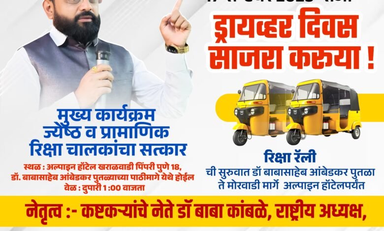 पिंपरी, (महाराष्ट्र ब्रेकिंग न्यूज) – महाराष्ट्र शासनाने १७ सप्टेंबर हा दिवस ‘चालक दिवस’ म्हणून घोषित केल्याच्या पार्श्वभूमीवर, पिंपरी-चिंचवड शहरात हा दिवस प्रथमच एका भव्य आणि आगळ्यावेगळ्या स्वरूपात साजरा करण्यात येणार आहे. रिक्षा चालकांच्या अथक परिश्रमाला आणि त्यांच्या प्रामाणिक सेवेला सलाम करण्यासाठी महाराष्ट्र रिक्षा पंचायत व रिक्षा ब्रिगेड यांच्या संयुक्त विद्यमाने या कार्यक्रमाचे आयोजन करण्यात आले आहे.