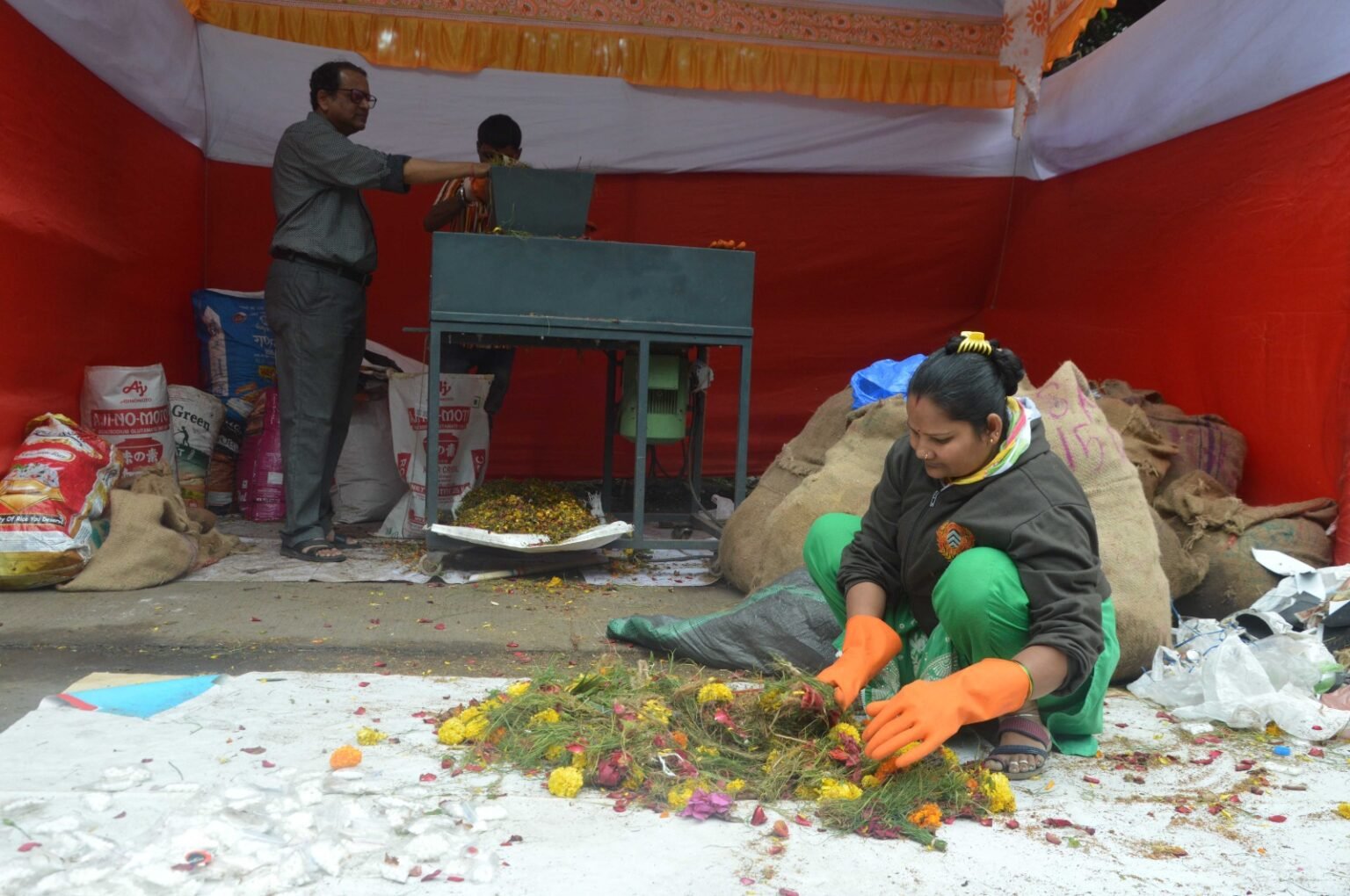 श्रीमंत दगडूशेठ हलवाई सार्वजनिक गणपती ट्रस्ट, सुवर्णयुग तरुण मंडळाच्या वतीने १३३ व्या वर्षी गणेशोत्सव थाटात साजरा होत आहे. त्यामध्ये जमा होणारे निर्माल्य डीपी रस्त्यावरील जोशी किचन जवळ उभारलेल्या ‘निर्माल्य श्रेडिंग प्रकल्पा’त नेण्यात येते. तेथे निर्माल्याची पावडर करून त्याचे सेंद्रिय खत तयार केले जाते आणि ते खत विनामूल्य अन्नदाता शेतकऱ्याला दिले जाते.