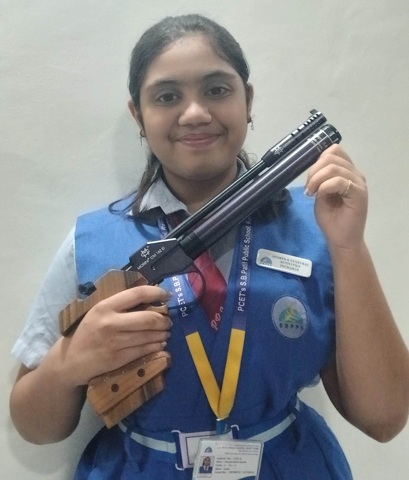 पिंपरी, ( महाराष्ट्र ब्रेकिंग न्यूज) – पिंपरी चिंचवड एज्युकेशन ट्रस्टच्या रावेत येथील एस. बी. पाटील पब्लिक स्कूल ची विद्यार्थिनी देवयानी आशिष कवळे हिची पिस्तूल शूटिंग स्पर्धेसाठी (सतरा वर्षाखालील) निवड झाली आहे.