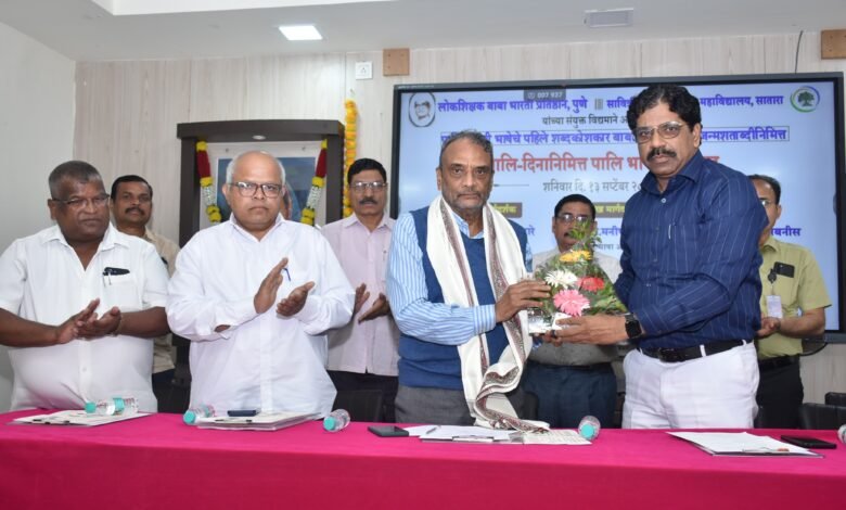 पिंपरी (महाराष्ट्र ब्रेकिंग न्यूज) – ‘संवादाचे माध्यम असलेल्या भाषा मानवी जीवन समृद्ध करतात!’ असे विचार ८९व्या अखिल भारतीय मराठी साहित्य संमेलनाचे अध्यक्ष डॉ. श्रीपाल सबनीस यांनी सावित्रीबाई फुले महिला महाविद्यालय, सातारा येथे शनिवार, (दिनांक १३ सप्टेंबर) व्यक्त केले. पालिदिनाचे औचित्य साधून लोकशिक्षक बाबा भारती प्रतिष्ठान, पिंपरी आयोजित पाली परिसंवादात अध्यक्षीय मनोगत व्यक्त करताना डाॅ. श्रीपाल सबनीस बोलत होते. स्वागताध्यक्ष प्राचार्य डाॅ. शिवलिंग मेनकुदळे, पाली भाषा अभ्यासक ॲड. डाॅ. सुगंध वाघमारे, मनीषा भोसले, लेखिका ललिता सबनीस, लोकशिक्षक बाबा भारती प्रतिष्ठानचे अध्यक्ष महेंद्र भारती, समन्वयक प्राचार्य डाॅ. पांडुरंग भोसले यांची प्रमुख उपस्थिती होती.