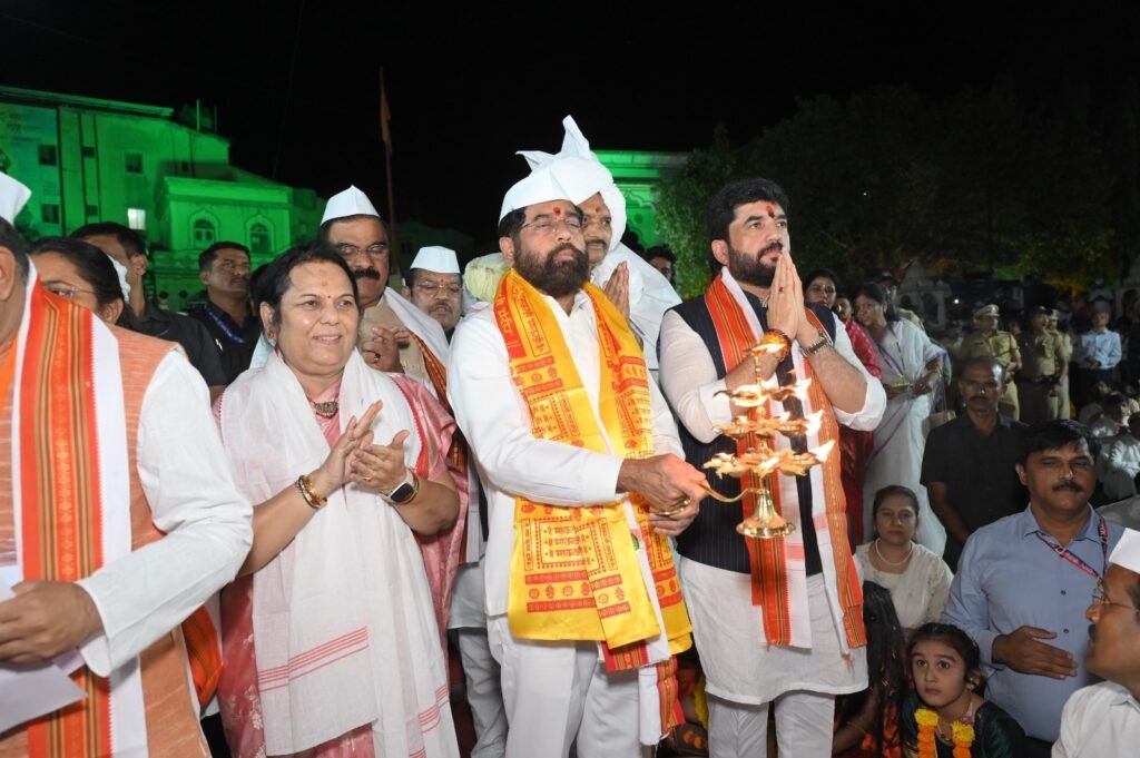 श्री ज्ञानेश्वर महाराज संस्थान कमेटी, आळंदी ग्रामस्थ यांचे वतीने श्री ज्ञानेश्वर महाराज यांचे ७५० व्या जन्मोत्सवी वर्षा निमित्त आयोजित दीपोत्सव, इंद्रायणी नदी पूजन प्रसंगी उपमुख्यामंत्री एकनाथ शिंदे बोलत होते. आळंदीत तत्पूर्वी ज्ञानोबा माउली, श्री विठ्ठल, श्री विठ्ठल हरिनाम गजरात संत ज्ञानेश्वर महाराज यांचा वैभवी रथोत्सव शुक्रवारी ( दि.९ ) भाविक, वारक-यांचे हरिनाम गजरात झाला. रथोत्सवात श्रींचा चांदीचा मुखवटा पूजा ,आरती दर्शनास भाविकांनी गर्दी केली. श्री संत ज्ञानेश्वर महाराज यांच्या ७५० व्या जन्मोत्सवी वर्षा निमित्त आयोजित अखंड हरिनाम सप्ताह आणि पारायण सोहळ्या निमित्त या रथोत्सव – दीपोत्सवाचे आयोजन करण्यात आले होते.