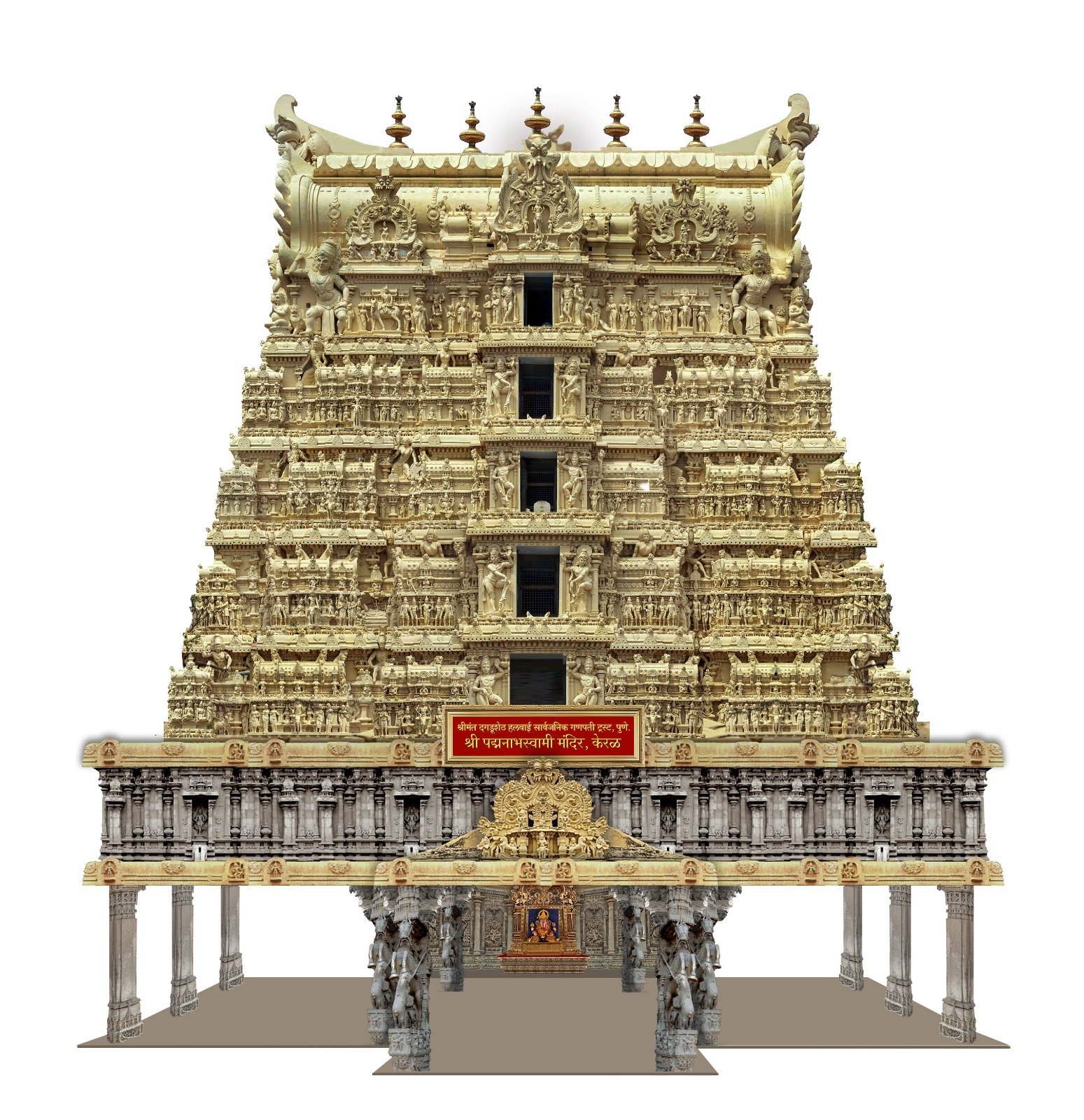पद्मनाभ स्वामींचे दर्शन तीन दरवाज्यांमधून घेता येते. पहिल्या दरवाज्यातून पद्मनाभ आणि त्याच्या हाताखाली शिवलिंगाचे रूप दिसते. दुस-या दरवाज्यातून पद्मनाभ, श्री देवी आणि भूदेवी यांच्या सोन्याच्या अभिषेक मूर्ती व पद्मनाभ स्वामींची चांदीची उत्सव मूर्ती पाहायला मिळते. तर, तिस-या दरवाज्यातून देवतेचे चरण आणि भूदेवी व मार्कंडेय मुनी यांचे दर्शन होते. अशा केरळमधील विलोभनीय पद्मनाभस्वामी मंदिराची प्रतिकृती सन २०२५ च्या गणेशोत्सवात देश-विदेशातील गणेशभक्तांना पुण्यात पाहायला मिळणार आहे.
