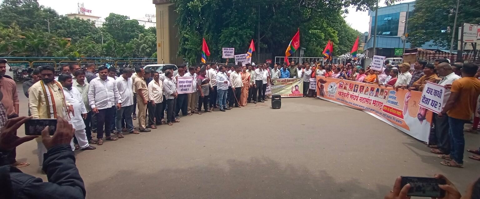 पिंपरी, (महाराष्ट्र ब्रेकिंग न्यूज) – पिंपरी चिंचवड महानगरपालिकेकडून शहरातील आर्थिकदृष्ट्या दुर्बल, गरजू नागरिकांसाठी, कामगारांसाठी १० हजार घरांची निर्मिती करावी, रावेत येथील पात्र लाभार्थी यांना निश्चित किमतीत म्हणजे ६ लाख ९५ हजार रु. किमतीत किवळे गृहप्रकल्पात घरे देण्यात यावीत,लाभार्थ्यांना पंतप्रधान आवास योजनेचे अनुदान देण्यात यावे या मागण्यांसाठी कष्टकरी संघर्ष महासंघ तर्फे कामगार नेते काशिनाथ नखाते यांच्या नेतृत्वात महापालिकेसमोर घरांसाठी आंदोलन करण्यात आले.