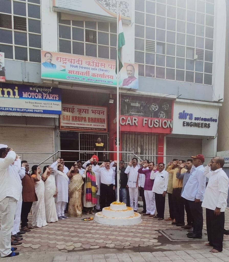 यावेळी शहराध्यक्ष योगेश बहल, चिंचवड विधानसभा संघटक सतीश दरेकर, भोसरी विधानसभा संघटक प्रकाश सोमवंशी, मा. नगरसेवक ॲड.गोरक्ष लोखंडे, मायला खत्री, राजेंद्र साळुंखे, हरिभाऊ तीकोणे, युवती अध्यक्ष वर्षा जगताप, ओबीसी प्रदेश कार्याध्यक्ष सचिन औटे, ओबीसी सेल अध्यक्ष प्रशांत महाजन, सेवादल सेल अध्यक्ष महेश झपके, सामाजिक न्याय विभाग अध्यक्ष संजय औसरमल, प्रदेश उपाध्यक्ष ज्ञानेश्वर कांबळे, प्रदेश सरचिटणीस राजेंद्रसिंग वालिया व्यवस्थापन सेल अध्यक्ष अकबर मुल्ला, महिला वरिष्ठ कार्याध्यक्ष कविता खराडे, अर्बन सेल महिला अध्यक्ष मनीषा गटकळ, व्हिजेएनटी सेल अध्यक्ष निर्मला माने, प्रदीप गायकवाड, माऊली मोरे ,जावेद शेख, क्षमा सय्यद, अशोक मोरे, गोरोबा गुजर, बापू मस्के, तुकाराम बजळकर, कार्यालयीन संपर्क प्रमुख धनाजी तांबे, सुनील अडागळे इत्यादी पदाधिकाऱ्यांसह अनेक कार्यकर्ते उपस्थित होते. कार्यक्रमाचे आभार सेवादल अध्यक्ष महेश झपके यांनी मानले.