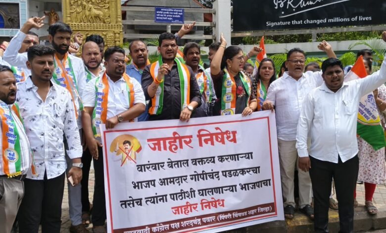 राष्ट्रवादी काँग्रेस पक्ष -शरदचंद्र पवार पिंपरी-चिंचवड शहर वतीने आमदार गोपीचंद पडळकर विरोधात निषेध आंदोलन
