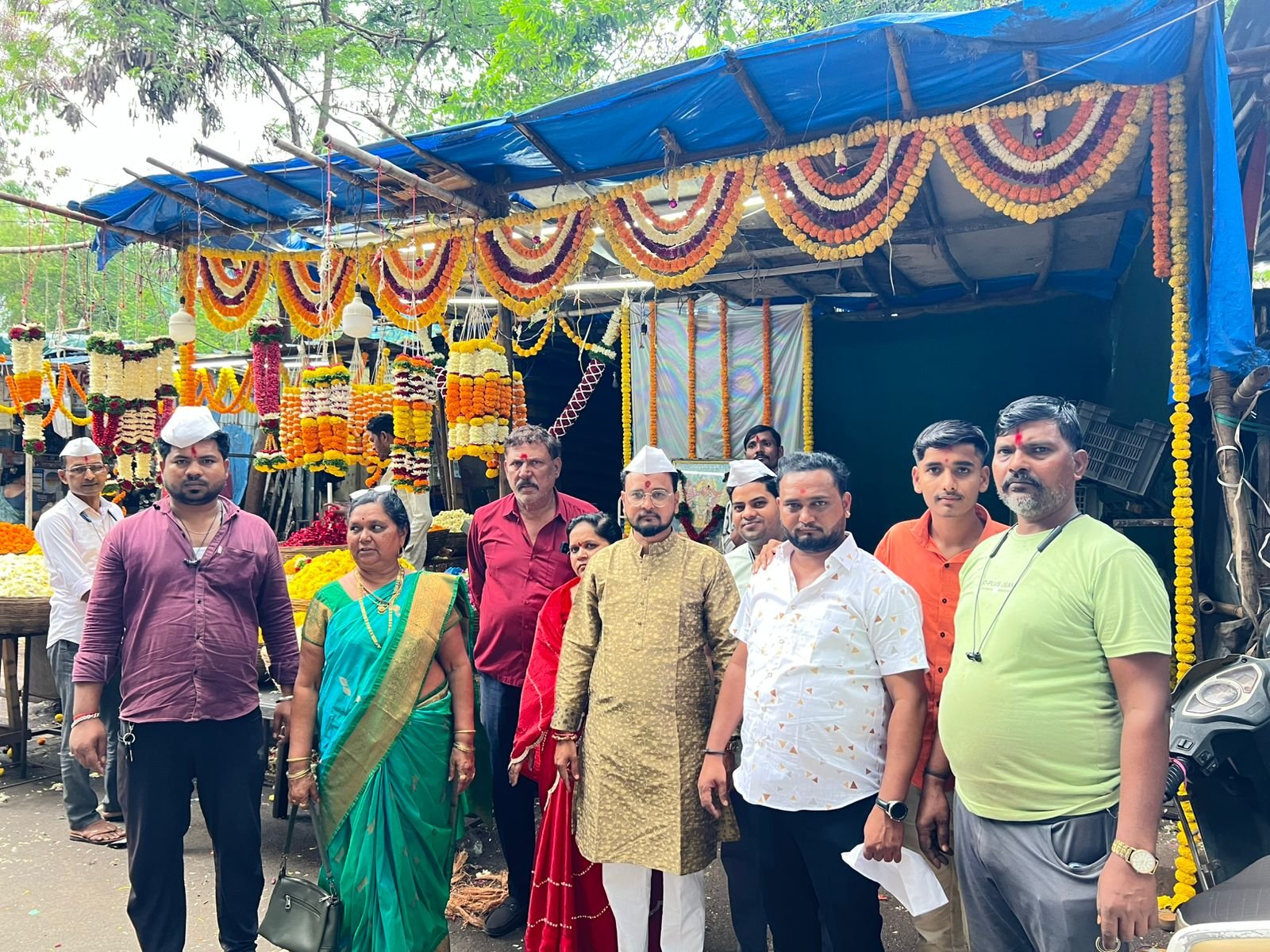 यावेळी व्यापारी मातोश्री सप्तश्रुंगी पुष्प भांडार ची मालक मीना आहेर,  गणेश आहेर,राजकुमार मोरे, दत्तात्रय फुले,नितीन रासकर, संजय बोडके. ज्ञानेश्वर केमसे. बाबा रासकर,शिवाजी सस्ते, शहाजे मामा राक्षे,विश्वास तापकीर, दत्तात्रय ठाकर. संतोष जाधव. शाम मांडगे, प्रणित बडदे, बाळू मामा वाघुले, संतोष फुले,सचिन आहेर,अजय हंडगर. सोमनाथ शिंदे, धनराज सोनवणे, उमेश भायानी,सचिन छपरीबंद शिवाजी गव्हाणे, अमित आहेर,शुभम घुले  अमरजीत यादव, अमन राजभर, प्रणिल जाधव. संस्कार घुले, मुकेश राजभर, नितीन कुदळे, सनी निकाळजे, बबलू कदम उपस्थित होते.