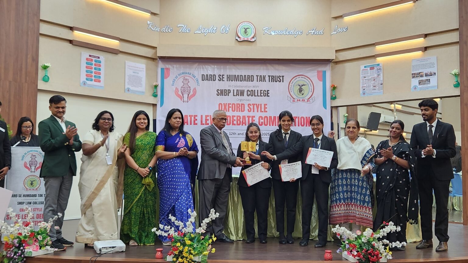 दर्द से हमदर्द तक संस्था आणि एस.एन.बी.पी. विधी महाविद्यालय, पिंपरी यांच्या संयुक्त विद्यमाने दिनांक १२ व १३ जुलै रोजी ऑक्सफर्ड शैली राज्यस्तरीय वादविवाद स्पर्धा एस.एन.बी.पी. विधी महाविद्यालय सभागृह, मोरवाडी, पिंपरी येथे ‘कॉलेजियम प्रणाली : शाप की वरदान?’ या विषयावर स्पर्धा आयोजित करण्यात आल्या होत्या. त्याच्या बक्षीस वितरण समारंभात अंबादास जोशी बोलत होते. कार्यक्रमास संस्थेचे अध्यक्ष ॲड. प्रकाश साळशिंगीकर, मुख्य कार्यकारी अधिकारी सुनीता साळशिंगीकर, सुभद्रा एज्युकेशन सोसायटीच्या अध्यक्षा डॅा वृषाली भोसले, ॲड. ऋतुजा भोसले, प्राचार्या डॉ. रोहिणी जगताप, उपप्राचार्य कैलाश पोळ, ॲड. सतिश गोरडे यांची प्रमुख उपस्थिती होती.
