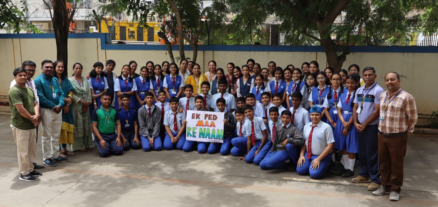 ‘एक पेड माँ के नाम’ या सीबीएससीच्या मोहिमेअंतर्गत भारत सरकारच्या उपक्रमाची माहिती देण्यात आली आणि याविषयावर मनोरंजक प्रश्नमंजुषा घेण्यात आली. अशा उपक्रमामुळे पर्यावरणाचे रक्षण करण्यासाठी जागरूकता निर्माण करण्याचा प्रयत्न निश्चितच यशस्वी होईल असे प्राचार्या डॉ. बिंदू सैनी यांनी सांगितले. यावेळी उपप्राचार्या पद्मावती बंडा, मुख्याध्यपिका शुभांगी कुलकर्णी, समन्वयिका निरुपमा काळे, वंदना सांगळे, दर्शन कामत, अर्चना प्रभुणे, सुप्रिया नितीन, सुजाता भोईटे, क्रांती कुलकर्णी व शिक्षकवर्ग उपस्थित होते.