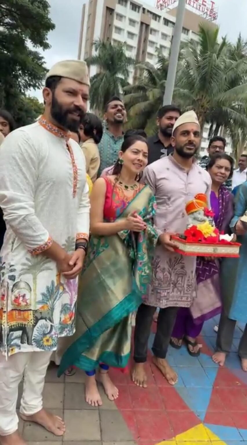 पिंपरी, (महाराष्ट्र ब्रेकिंग न्यूज) – पिंपरी चिंचवड शहरातील कला, साहित्य, चित्रपट क्षेत्रातील मान्यवरांनी आज गणरायाला निरोप दिला. जल,ध्वनी, वायू प्रदूषण मुक्त आणि पर्यावरणपूरक गणेशोत्सव साजरा करण्याचा संदेश दिला. अभिनेत्री सोनाली कुलकर्णी यांनी शनिवारी (दि 7). आई सविता, वडील मनोहर आणि भाऊ व पती यांच्यासह सोनाली कुलकर्णी यांनी गणरायाला निरोप दिला.