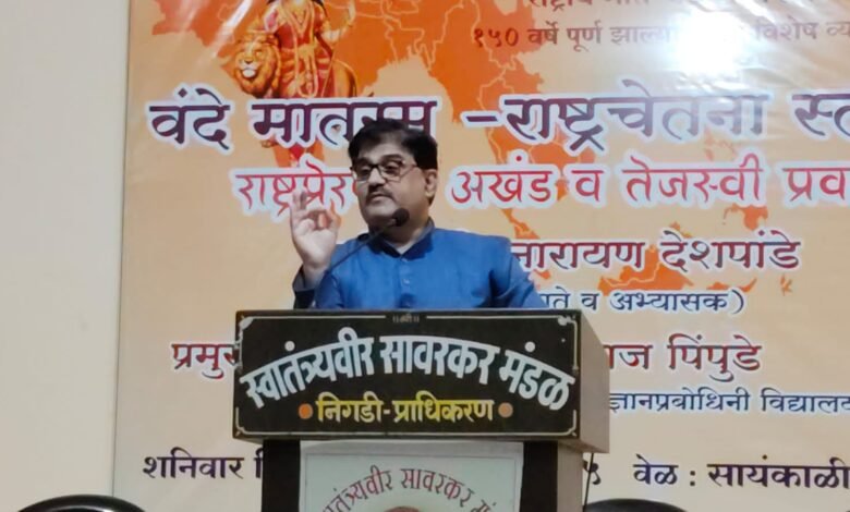 स्वातंत्र्यवीर सावरकर सभागृह (पेठ क्र. २६, निगडी प्राधिकरण) येथे झालेल्या या कार्यक्रमात देशपांडे यांनी बंकिमचंद्र यांच्या जीवनातील अपमानाच्या खोल अनुभवातून आणि मातृभूमीच्या भावदर्शनातून ‘वंदे मातरम्’ची निर्मिती कशी घडली, याची सांगोपांग मांडणी केली. ‘आनंदमठ’ कादंबरीतून त्यांनी स्वातंत्र्यलढ्याला नवचैतन्य देणारी सूचक दिशा दिली, असे त्यांनी स्पष्ट केले.